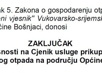 Zaključak o davanju suglasnosti na cjenik prikupljanja komunalnog otpada